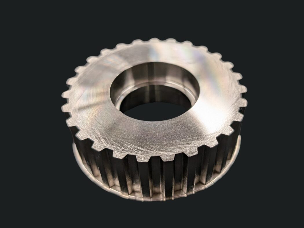 本表面処理・めっき処理事例は、アルミ表面処理・めっき. COMが手掛けた食品機械のパーツとなる製品で、無電解ニッケルめっきを施しています。ギア形状で回転をしながら相手部品と噛み合うことで駆動する部品です。